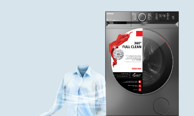 Máy giặt Toshiba trang bị 360 FULL CLEAN gồm 3 công nghệ đỉnh cao. Trong đó công nghệ AI có khả năng cảm biến thông minh cho ra chương trình giặt tối ưu, công nghệ CycloneMix giúp đánh tan xà phòng tốt hơn, không gặp tình trạng đọng xà phòng trên quần áo; công nghệ Ultra Fine Bubble tạo ra các siêu bọt khí nano, giặt sạch sâu từng sợi vải.